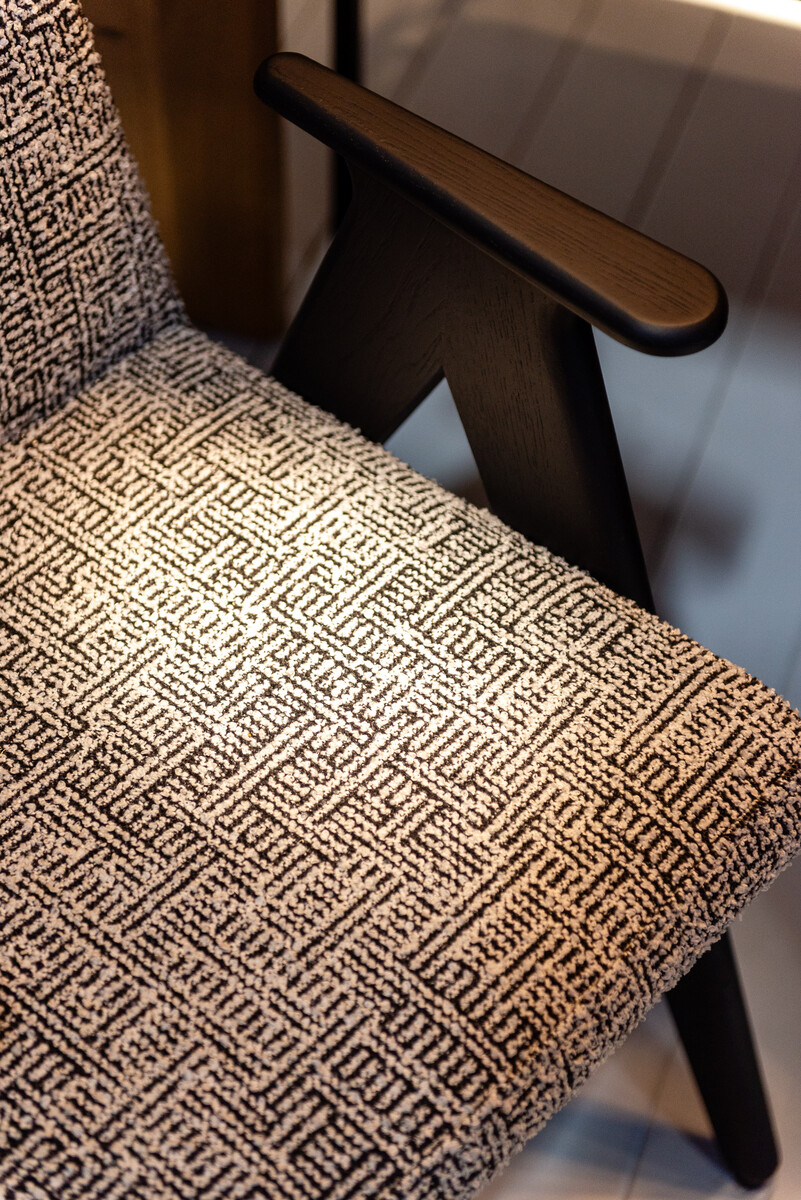 the oak frame is available in walnut, wengé, black or natural finsih.