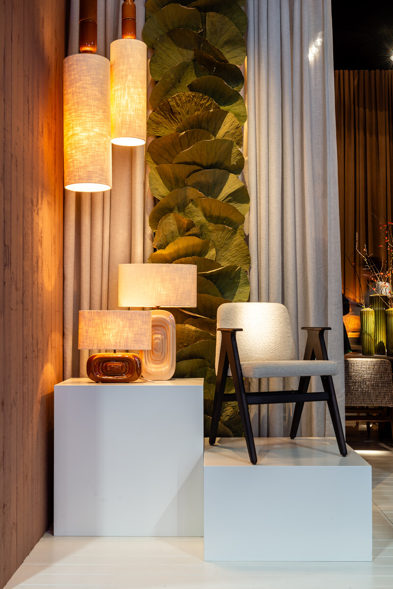 Table Lamp Laslo is a hand made ceramic lamp with a roughly woven cotton lampshade.