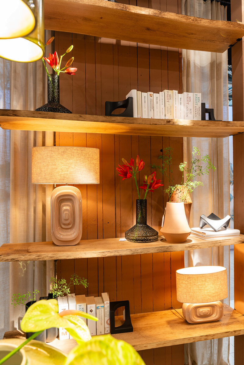Table Lamp Lexi Nude is a hand made ceramic lamp with a roughly woven cotton lampshade.