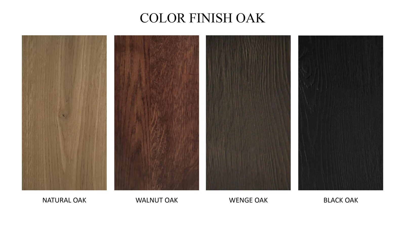 The oak is available in natural, wenge, walnut and black colored oak.