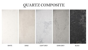 The options for the quartz composite are; white, sand, light grey, dark grey or black.
