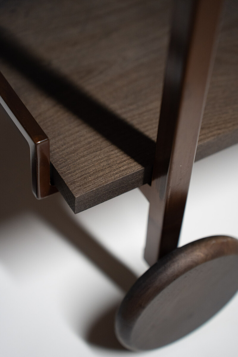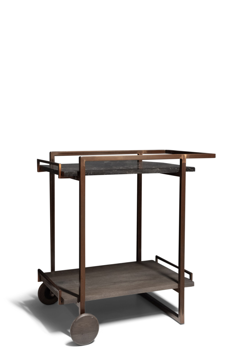 The trolley is available with 2 oak or 2 quartz plates or with a combination of oak and quartz.