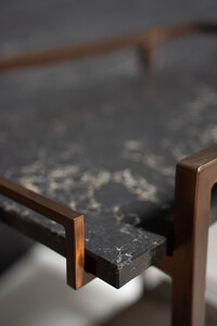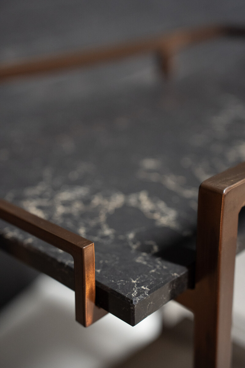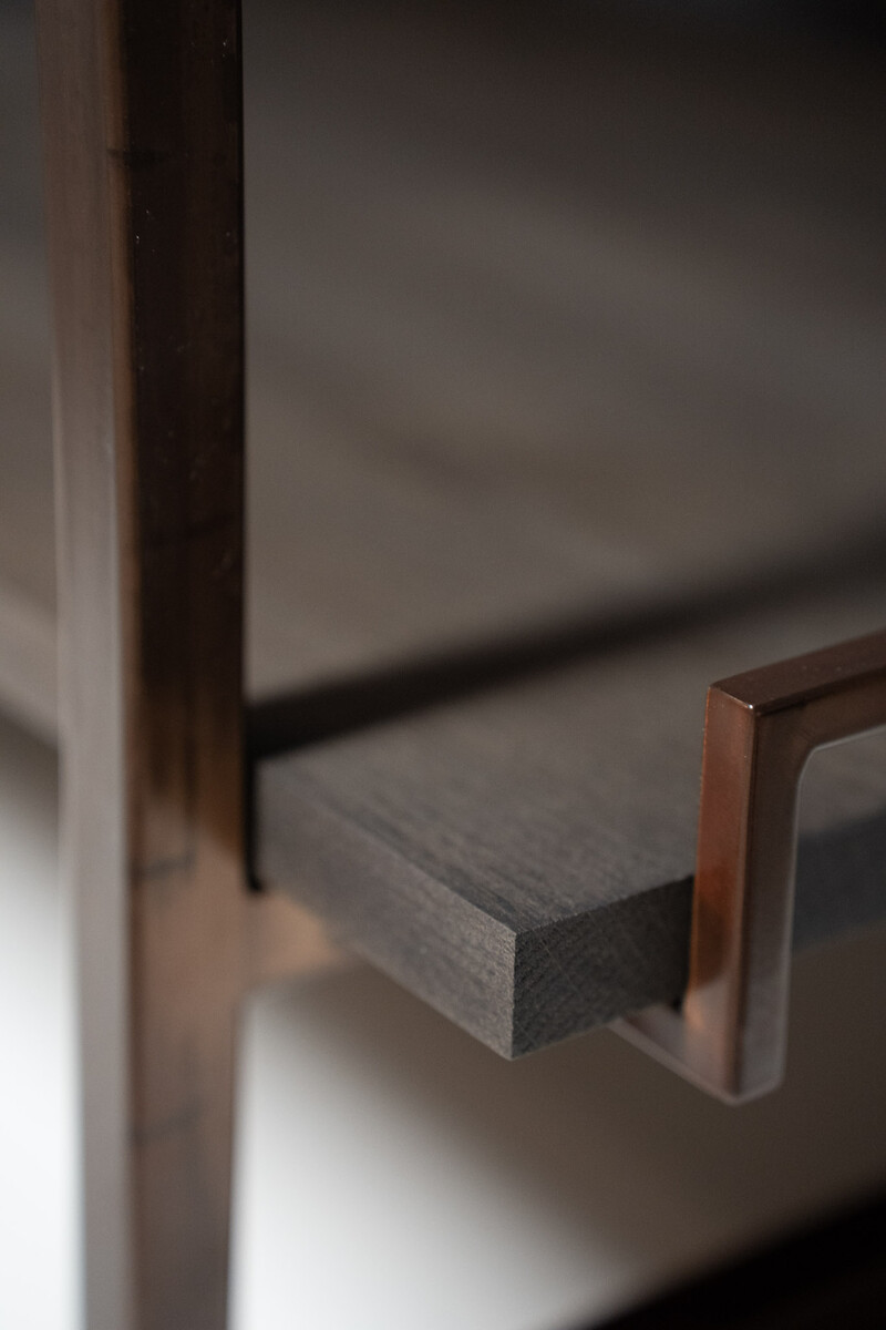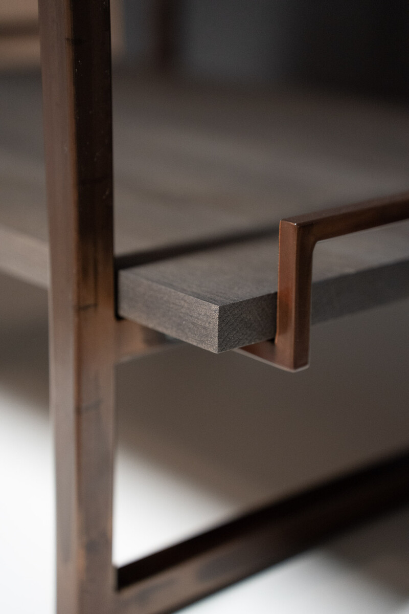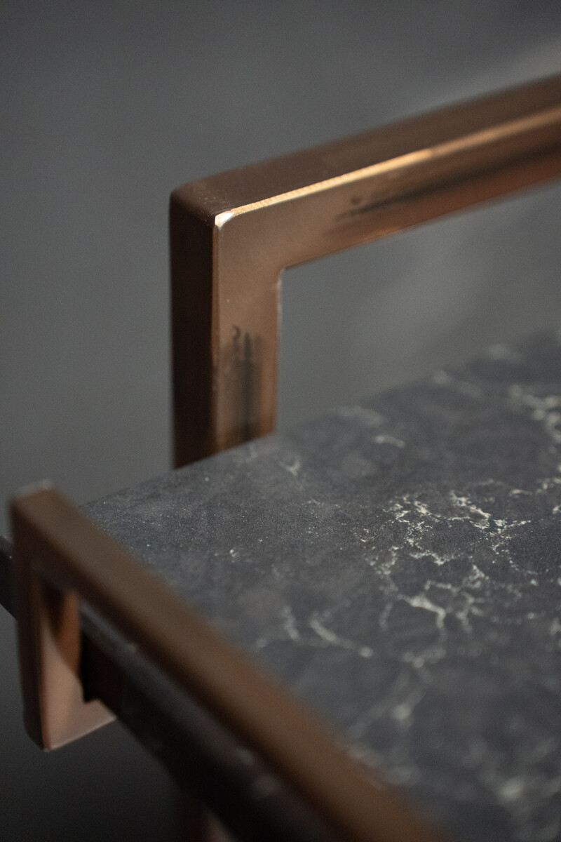 The metal frame is powdercoated in copper look.